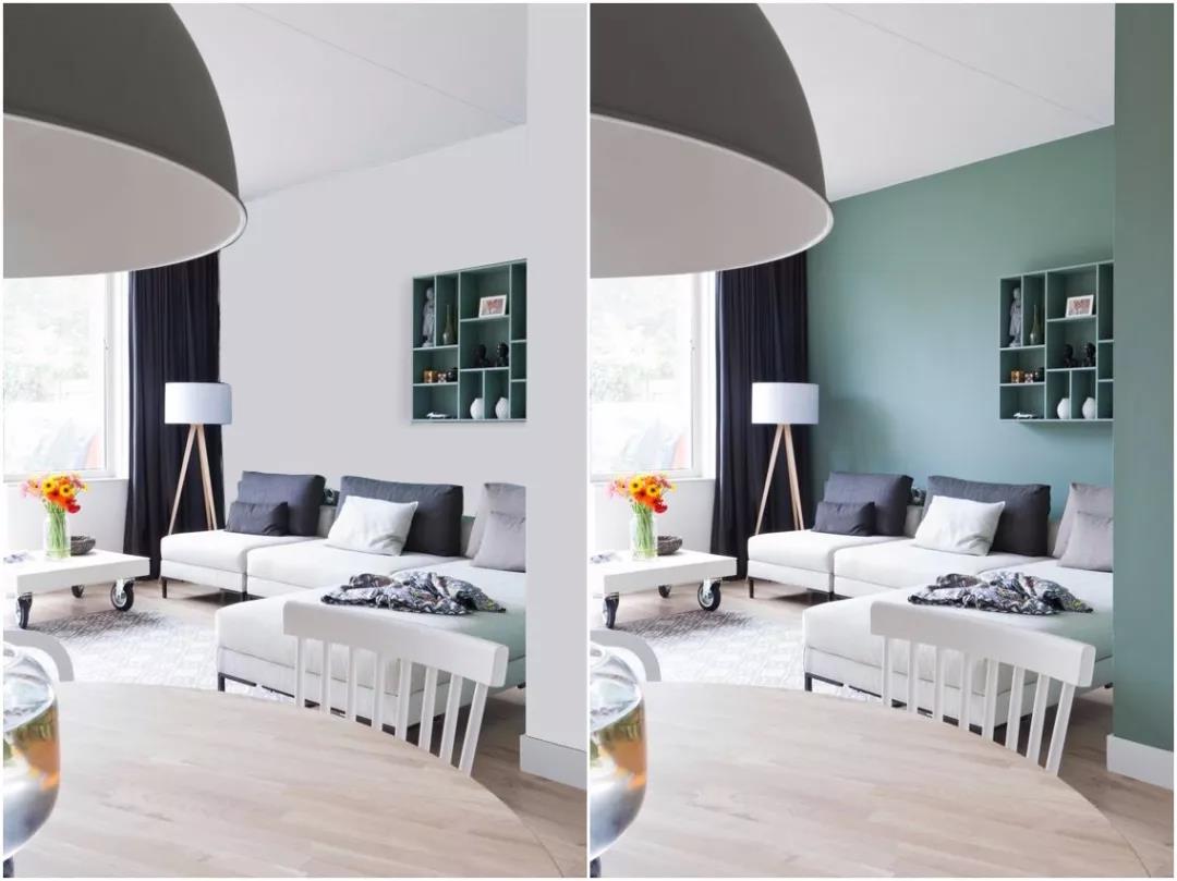 然后再增加一些白色的家具,整個(gè)空間仿佛亮堂了許多。