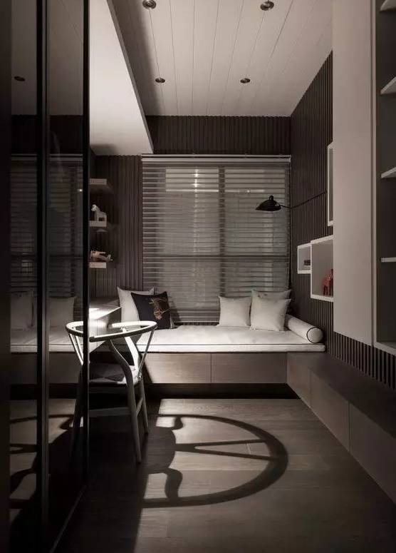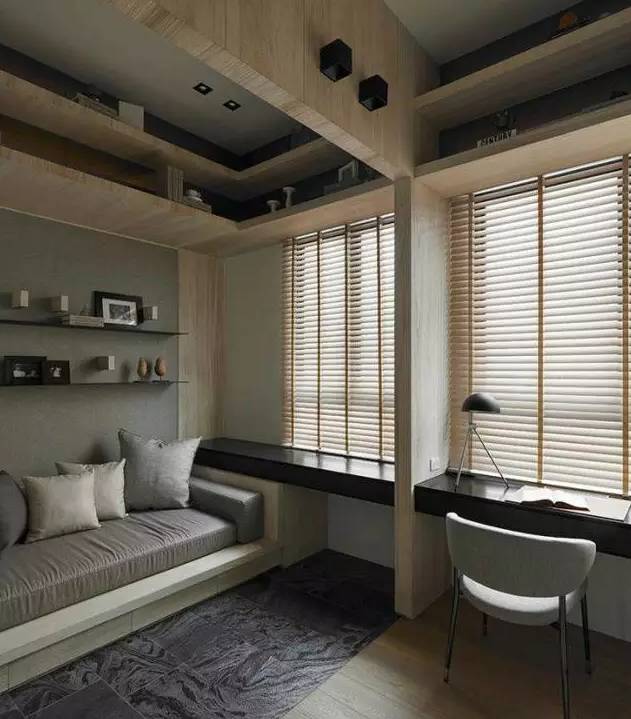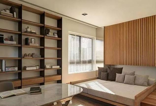 如果書房夠大的話,榻榻米會(huì)給你提供一種更加舒適的閱讀體驗(yàn)。它可以承載多種功能,實(shí)現(xiàn)儲(chǔ)物、閱讀、會(huì)客、休息一體化。