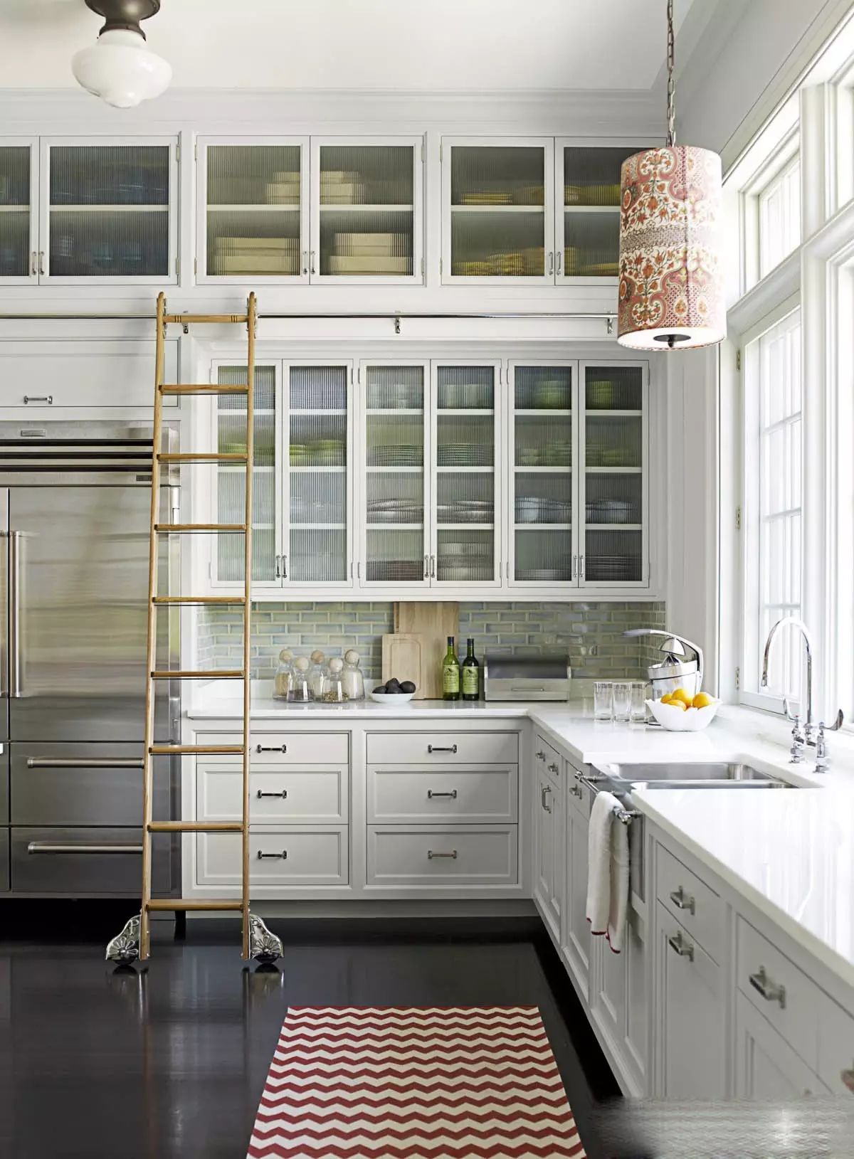 ?超高的置物柜!不過搭配梯子就沒有問題啦~這樣能收納很多碗碟杯筷呢。