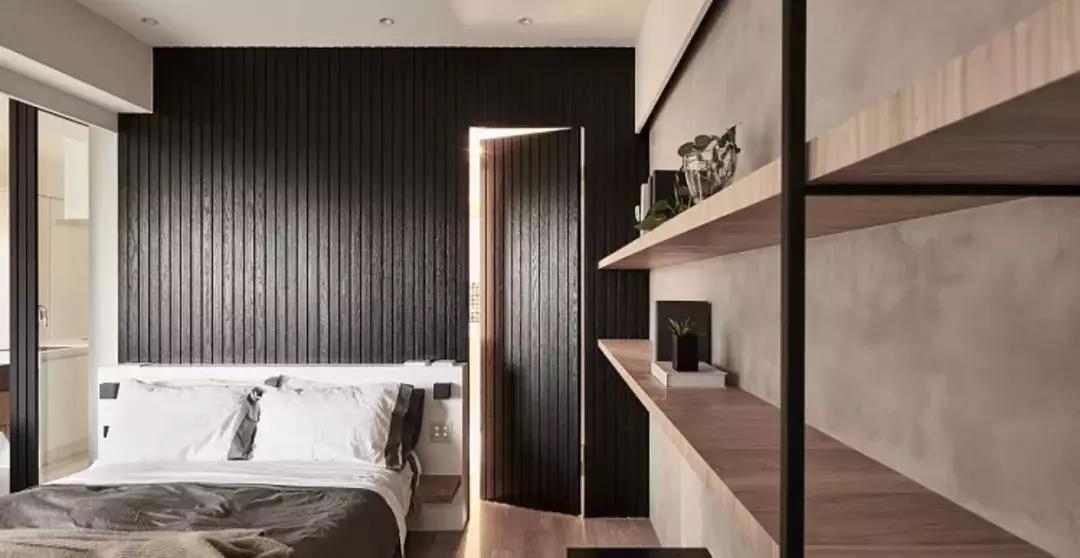 有一種隱形門藏在在一大排收納架的中間,一來用作收納使用,二來收納架上的紋理剛好是把門巧妙的隱藏了起來。另一種隱形門放置在家具收納旁邊,顯得是家具的一部分,將門打開,一個屬于自己的私密空間得以展現(xiàn)。