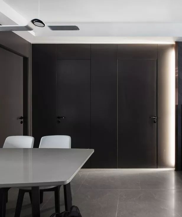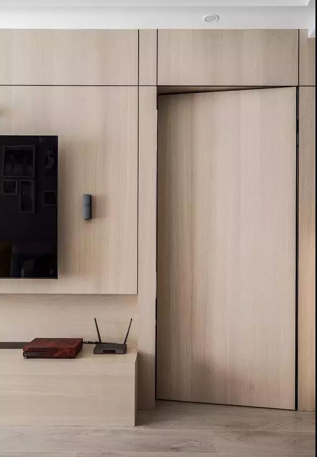 讓門隱形的最好方法就是讓門與墻融為一體,關(guān)鍵點在于不能有門套和門板的材質(zhì)和墻面完全一樣。這樣的“隱形門”,不僅最簡單、造價上面也是最便宜的,能夠保證和墻面有一定的視覺統(tǒng)一感。