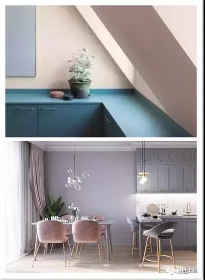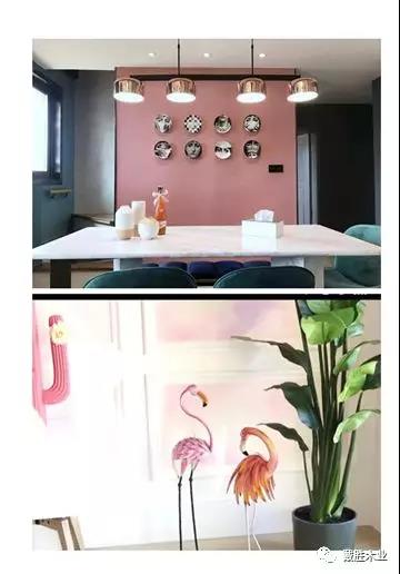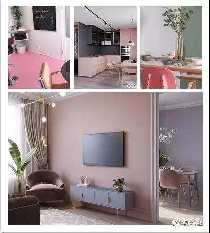獵人綠可以說是最深的綠色,即墨綠色,臟粉色的飽和度又很低,墨綠色搭配臟粉色它們是冷暖沖突對比,這樣一來會讓你的家顯得非常有格調(diào)。