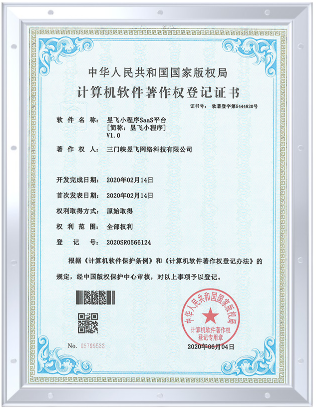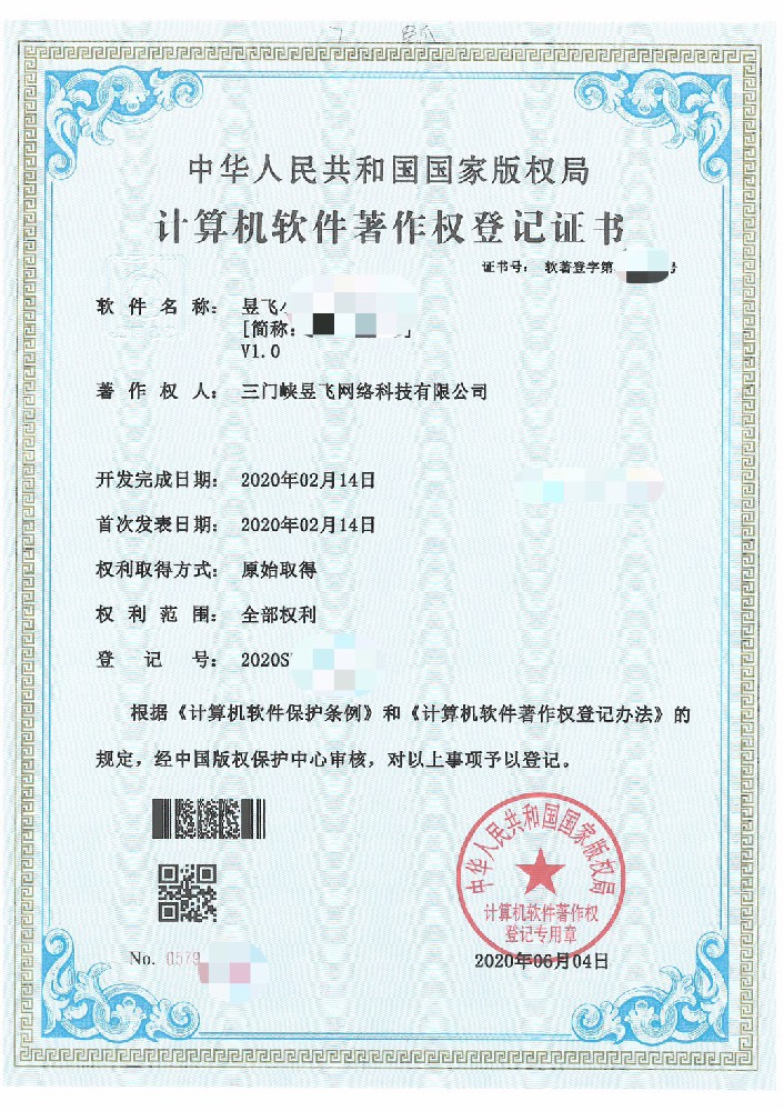 三門峽昱飛網(wǎng)絡(luò)科技有限公司取得1項計算機(jī)軟件著作權(quán)登記證書