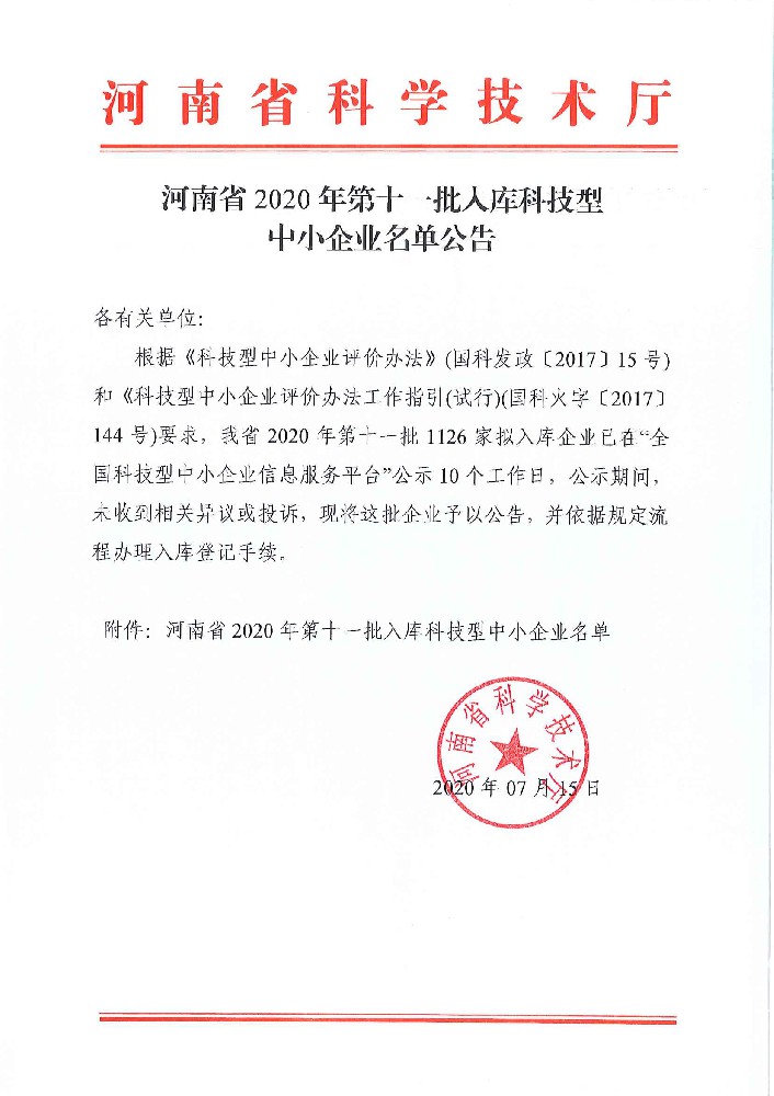 根據(jù)《科技型中小企業(yè)評價辦法》和《科技型中小企業(yè)評價工作指引(試行)》要求,經(jīng)企業(yè)自主評價、評價機構(gòu)審核等程序,經(jīng)公示通過,河南省科學(xué)技術(shù)廳確定了2020年第十一批1126家入庫科技型中小企業(yè)??萍夹椭行∑髽I(yè)是加快培育和發(fā)展戰(zhàn)略性新興產(chǎn)業(yè)的重要載體,大力培育科技型中小企業(yè),對提升經(jīng)濟增長內(nèi)生動力,促進工業(yè)轉(zhuǎn)型升級和高質(zhì)量發(fā)展具有重要意義。