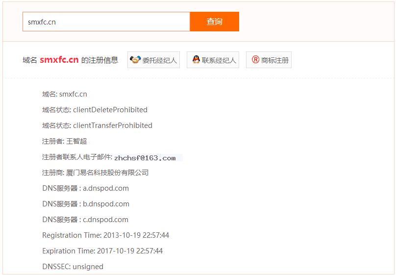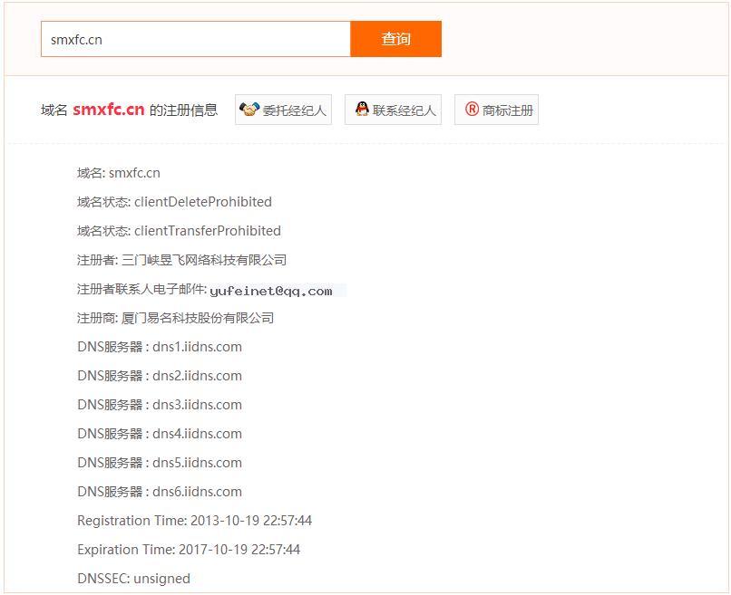 近日,域名smxfc.cn易主,從易名中國(guó)的域名交易信息和whois信息中可以看出,該域名以成交價(jià)588元人民幣被三門峽昱飛網(wǎng)絡(luò)科技有限公司所購(gòu)得。